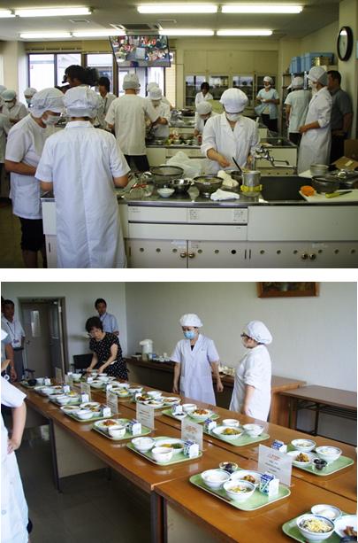 財団法人学校給食会では、学校給食における地場産物の活用を促進するため様々な取組を行っています。その取組の一つが「地場産品を活用した学校給食献立調理発表会」。今年で4回目となる発表会は、8月19日に行われ、県内から9チームが参加しました。1チーム2名の調理担当者が、わずか1時間で5名分の献立を作ります。いずれも、地域の特産品を活かした献立で、とても美味しく(試食しました^^)、見た目も鮮やかです。これから、発表会で披露されたメニューをご紹介していきますのでお楽しみに!