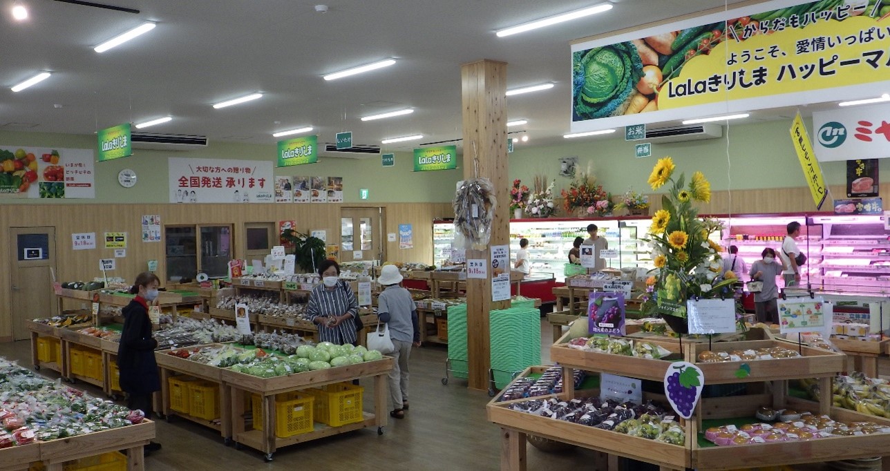 - 当物産館「LaLaきりしまハッピーマルシェ」は、国道221号線沿いの高原IC近くに位置し、同敷地内には、ダイレックス、セブンイレブン、すももベーカリーなどを擁する複合施設で、大型駐車場を完備し、地元高原町及び都城、小林、鹿児島方面のお客様も多く来店され、令和5年6月に10万人達成のセレモニーを開催しました。